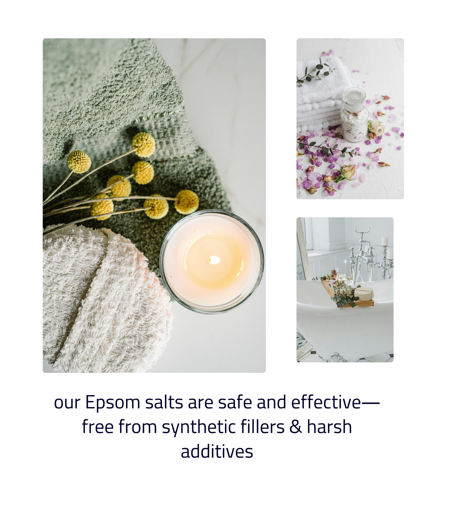 I am so happy you are here! Check out all our clean Epsom salt blends when you need an extra boost of relaxation & restoration. Not sure what to buy? Try our sample pack! Made fresh with 3 of our classic blends :)